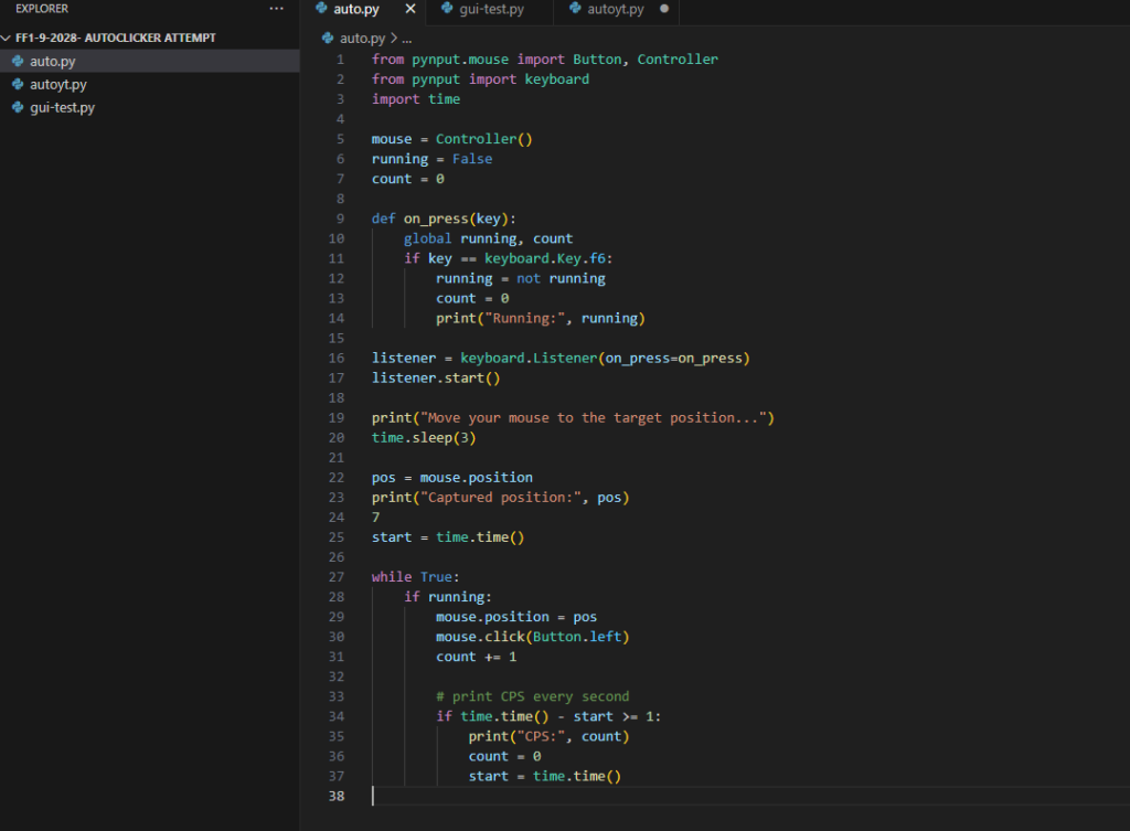above is an auto clicker i’ve worked on with copilot, it allows me to pick a spot to auto click on then it just spams