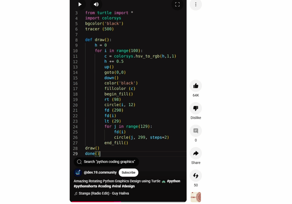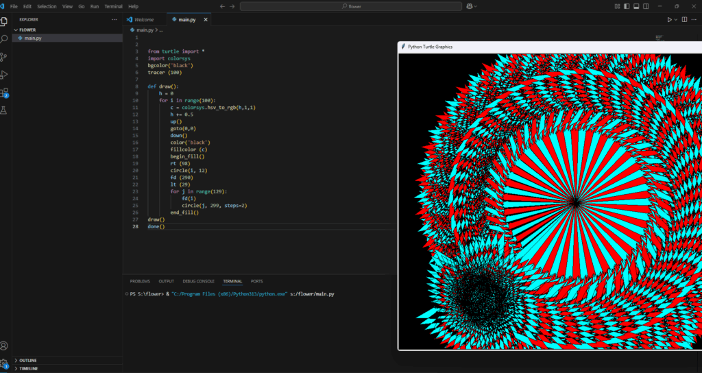 about codeBy belal / September 26, 2025 i did code Amazing Rotating Python Graphics Design using Turtle other picture link