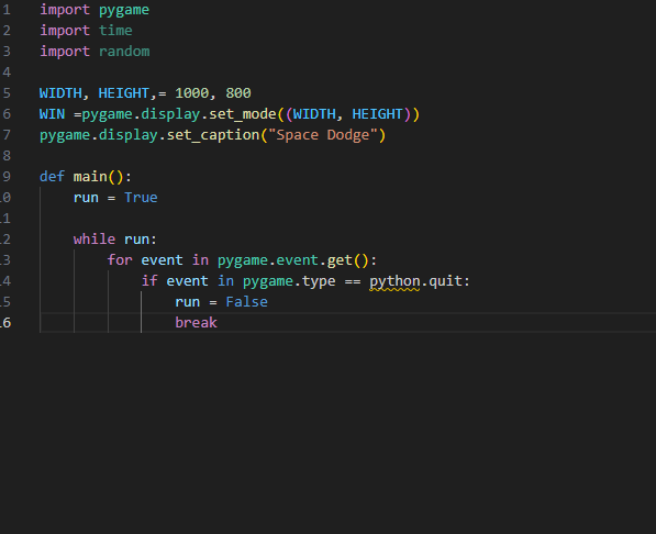 today I was making a game that lets you dodge things and move around here’s a little bit of the code as it is not done yet
