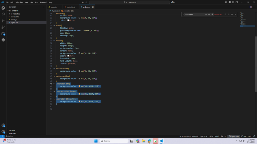 I used .operator-btn to add a default button color