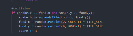 this part of the code allows me to eat the red square to grow the snake bigger