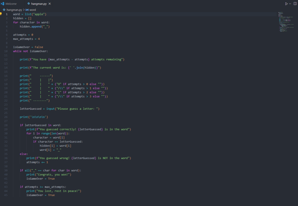 today for free friday I followed a video and made a hang man game