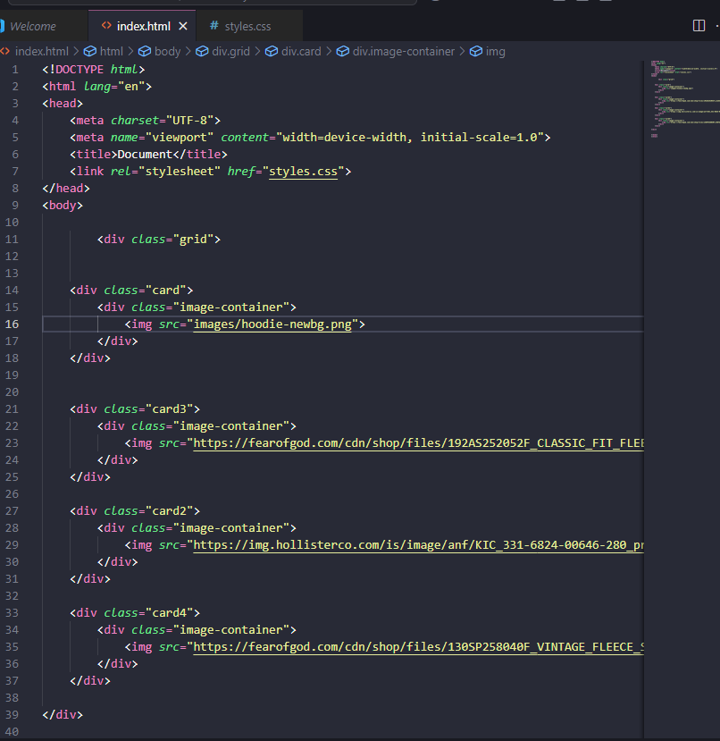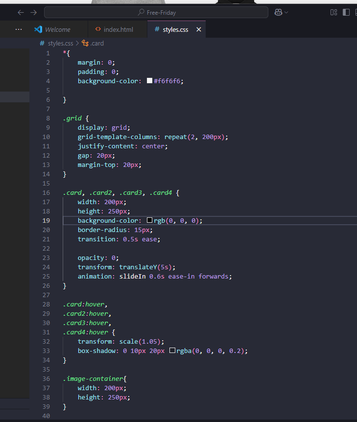 I made a card container for all the images and added different types of code to it, to try and make it a professional website.