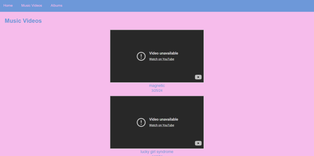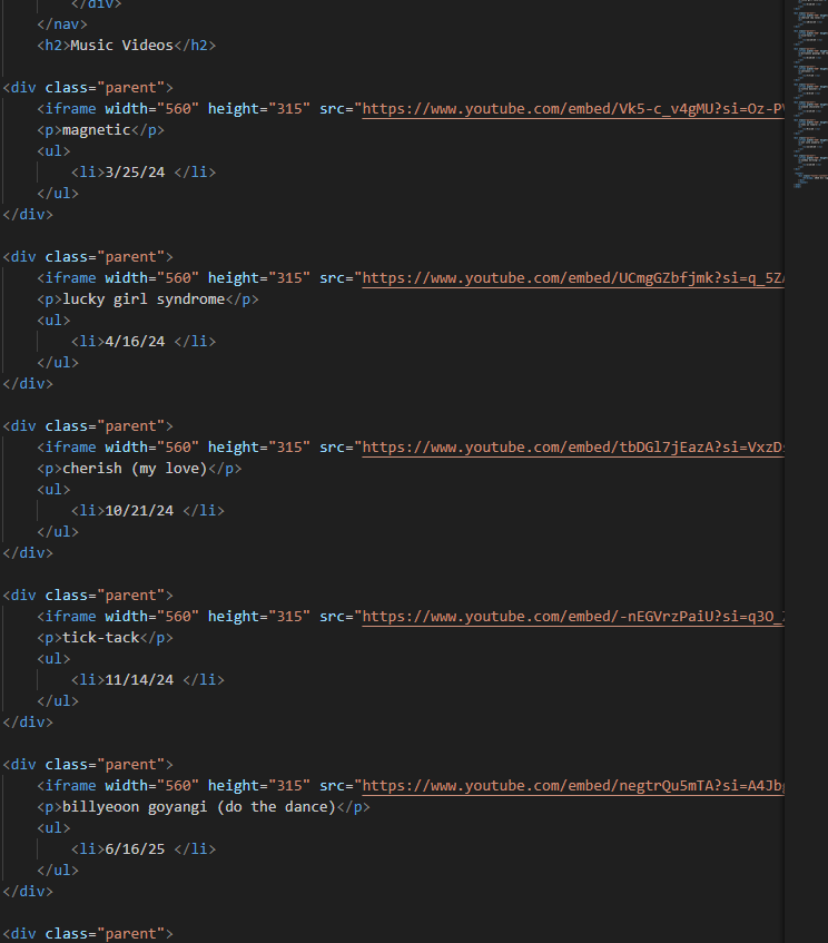 This is the code for the music videos page.