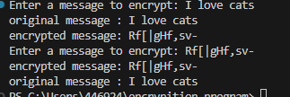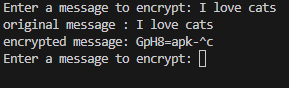I also made a encryption program. It asks the user to enter a message to encrypt and it encrypts the message.