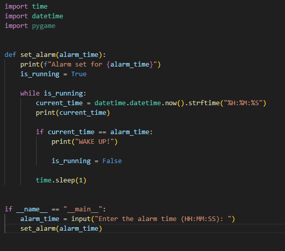 alarm_time = input("Enter the alarm time (HH:MM:SS): ")