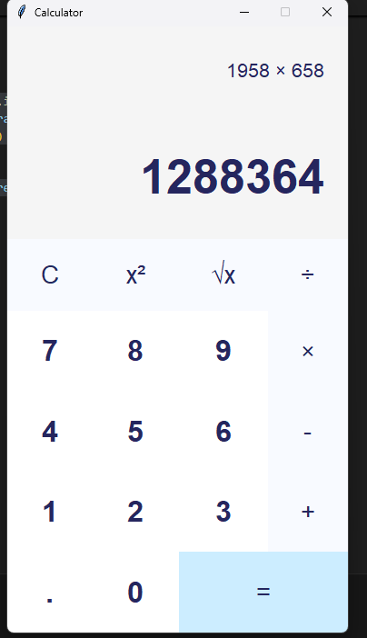 button = tk.Button(self.buttons_frame, text="=", bg=LIGHT_BLUE, fg=LABEL_COLOR, font=DEFAULT_FONT_STYLE,