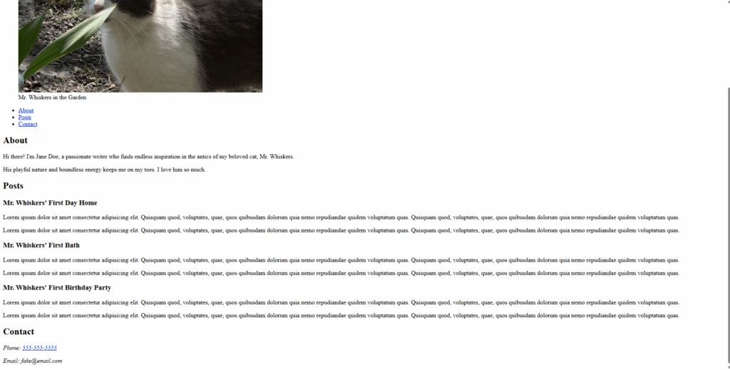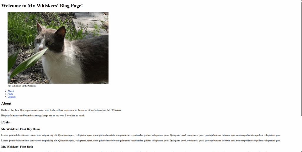 the code above is what i used to finish up i first added a section element to section the piece of code and then i added h2 and h3 elements introducing what the readers were going to read and then i added p elements and filled them with lorem ipsum.