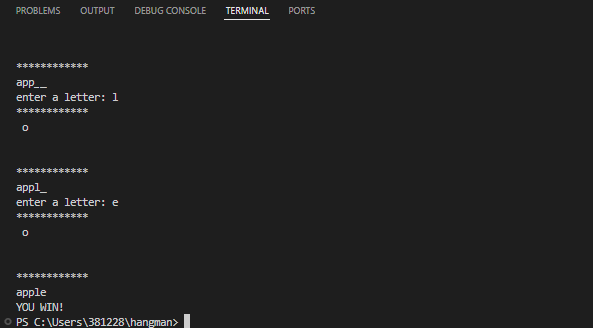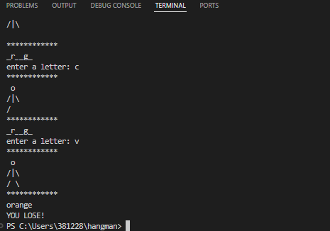 today i made a small project of hangman that took 20mins using python on vscode i will be adding code and pictures below