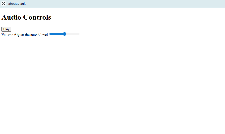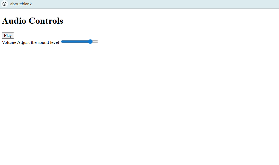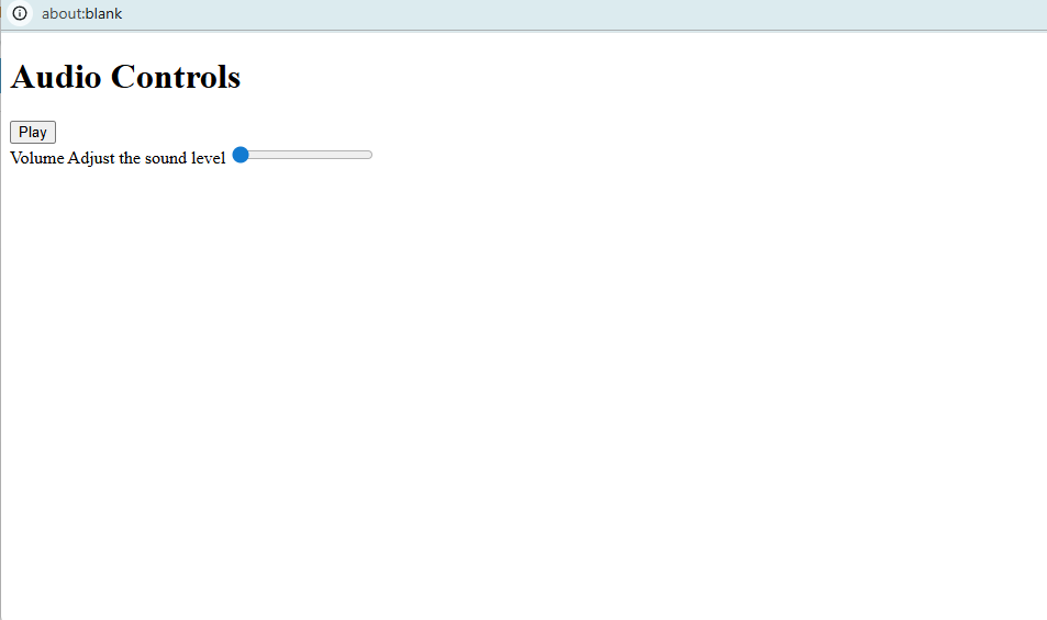 today for my first project i worked on building an accessible audio controller very small project that took about 10 minutes i used spans and input elements nested in a div element i also added id’s to the span elements and type, min, max, and value attributes on the input element i will add pictures below.