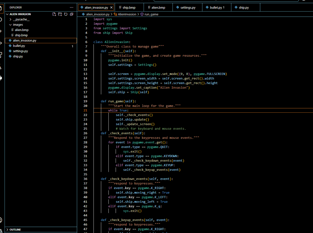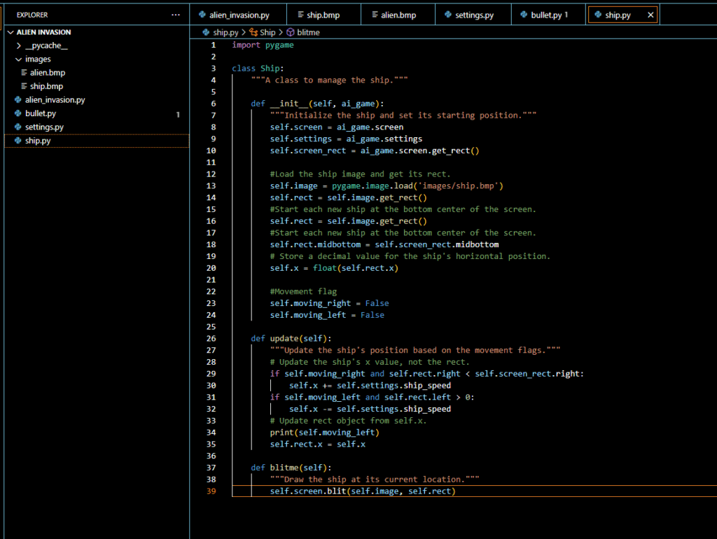 Today I worked on my alien ship and make it move. I struggled with how to move to the left but the teacher helped me find the mistakes.
