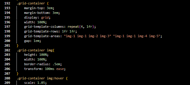 This code in html Basically contains the pictures in orders and in grids
