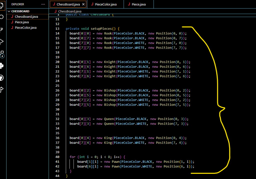 This whole section of this code is Responsible for each of the piece on the board by having their own individual classes