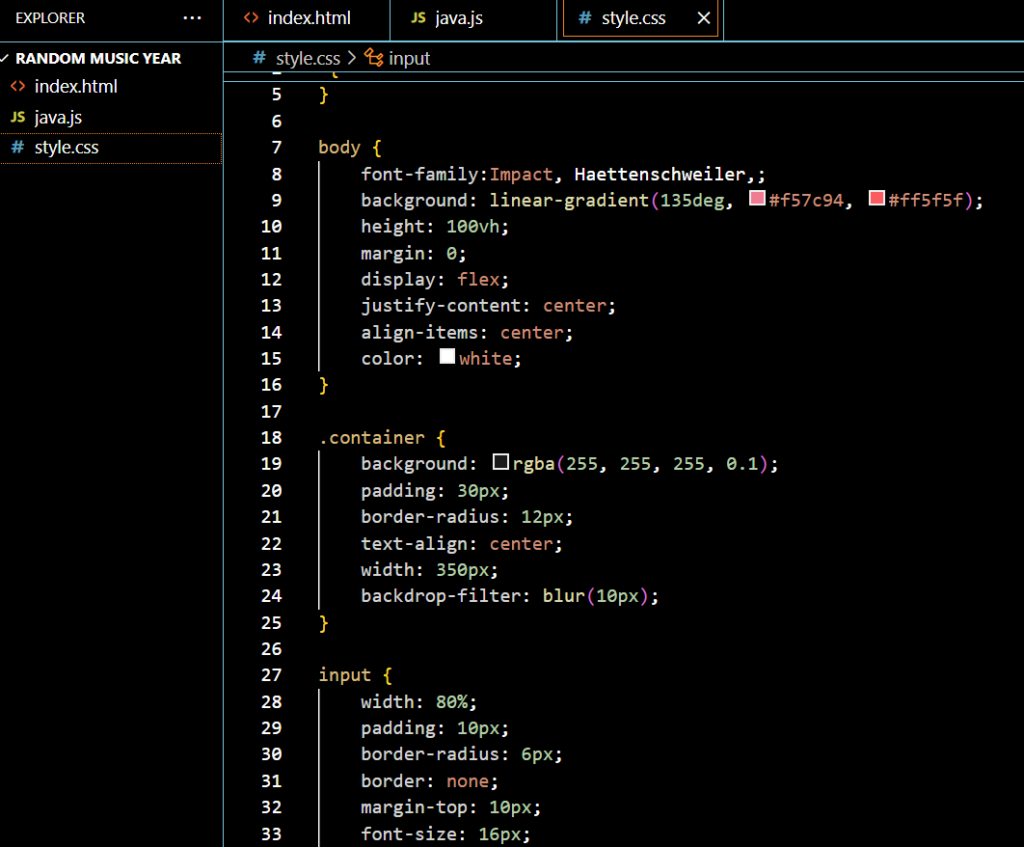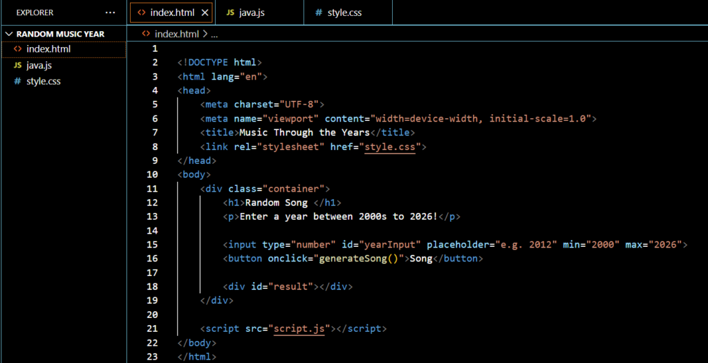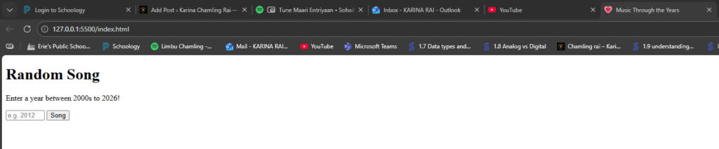 Today I decided to my project where I can input a year and the button outputs a music from that year