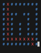 ["#", "#", "#", "#", "#", "#", "#", "X", "#"]