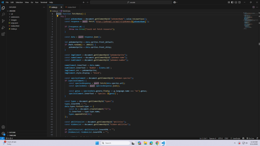 Today, I worked on an assignment based on PokéAPI, in order to make up for missed Free Friday Assignments, also, I found out how to type in alternate forms in the Fetch Pokémon Bar.