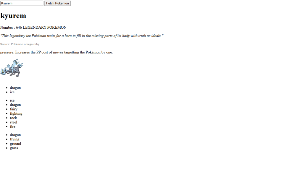 I added Weaknesses, Advantages, and Pokedex Entries, and I also signified which Pokemon were Legendary or Mythical.